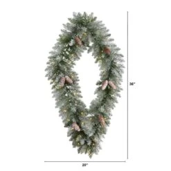 HomPlanti 3′ Holiday Christmas Geometric Diamond Wreath With Pinecones And 50 Warm White LED Lights