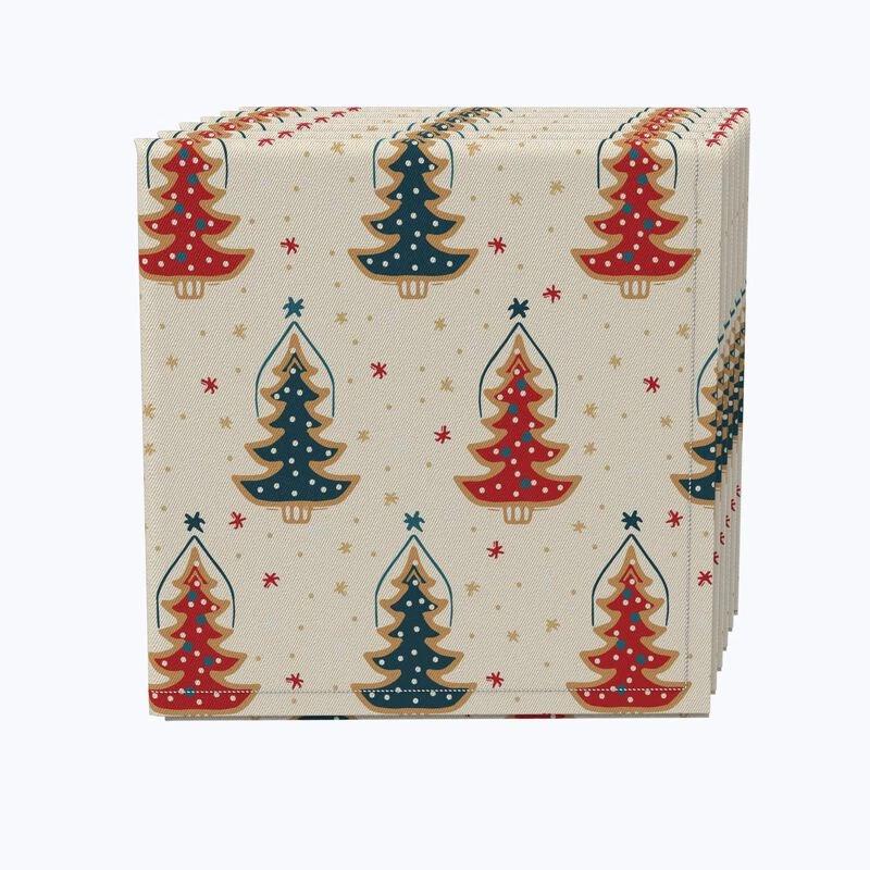 Fabric Textile Products, Inc. Napkin Set Of 4, 100% Cotton, Hand Drawn Christmas Trees