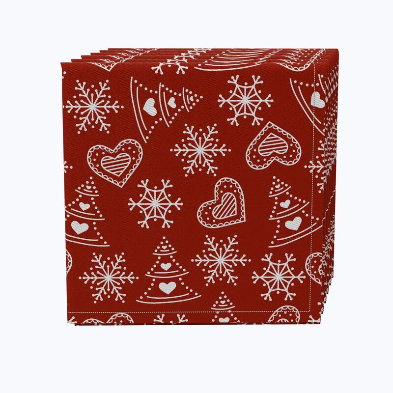 20″ x 20″ Napkins. Set of 4. Printed and Sewn in the USA, 100% Cotton. Hemmed Edges. Machine Washable, Gentle Cycle with Light Iron touch up as needed. Perfect for all occasions!