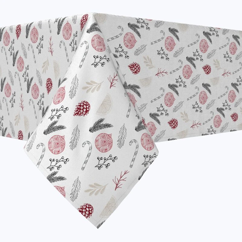 52″ x 120″ Rectangle Tablecloth. Printed and Sewn in the USA, 100% Cotton. Hemmed Edges. Seamless cloth. Machine Washable, Gentle Cycle with Light Iron touch up as needed. Our Cotton is a natural fiber woven twill fabric. Perfect for all occasions!