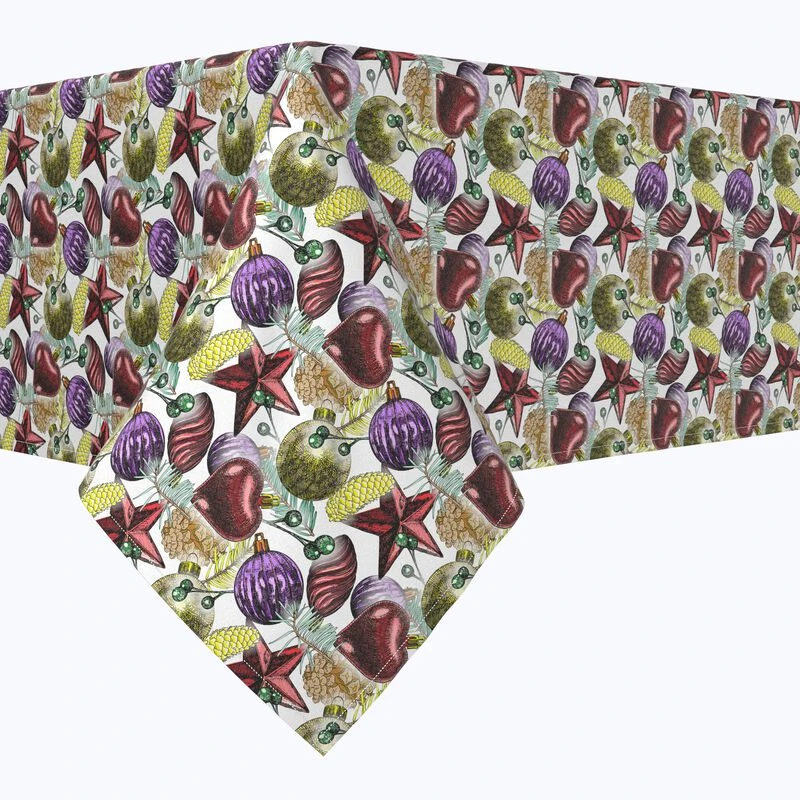Fabric Textile Products, Inc. Rectangular Tablecloth, 100% Polyester, Beautiful Sketch Christmas Ornaments Red