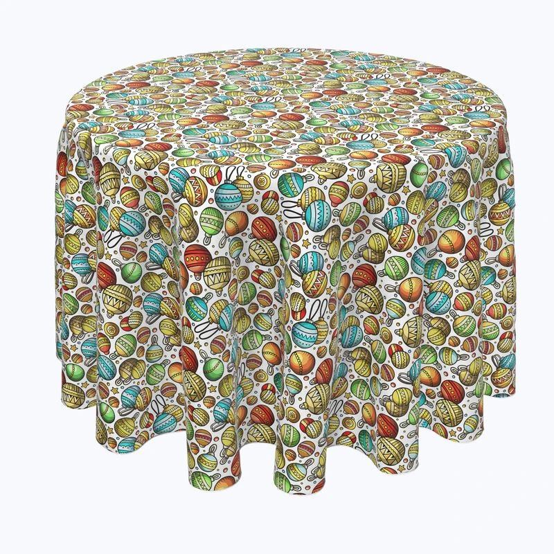 70″ Round Tabelcloth (size is of tablecloth not table). Made in the USA, 100% Milliken Spun Polyester. Merrowed Edges. Seamless cloth. Product is printed. Machine Washable: Warm water wash, cold rinse, tumble dry low. Light Iron touch up as needed. Will soften after each wash to a cotton feel. Engineered to resist stain absorption and linting. Perfect for any and all occasions at home, hotels & restaurants alike!