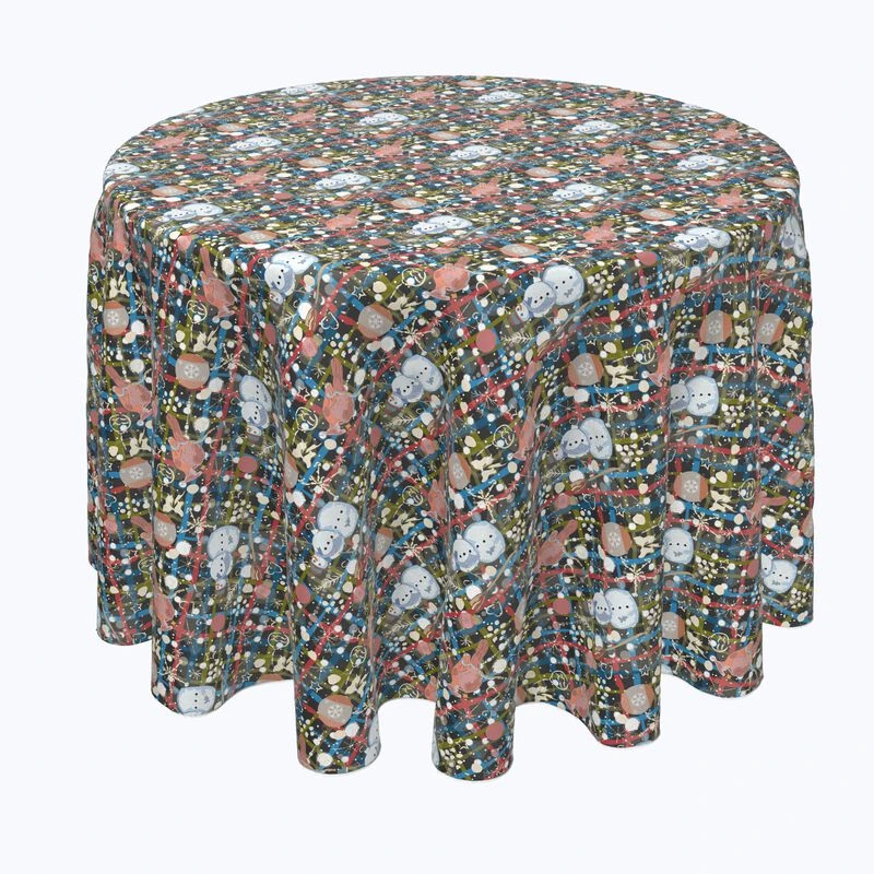 70″ Round Tabelcloth (size is of tablecloth not table). Made in the USA, 100% Milliken Spun Polyester. Merrowed Edges. Seamless cloth. Product is printed. Machine Washable: Warm water wash, cold rinse, tumble dry low. Light Iron touch up as needed. Will soften after each wash to a cotton feel. Engineered to resist stain absorption and linting. Perfect for any and all occasions at home, hotels & restaurants alike!