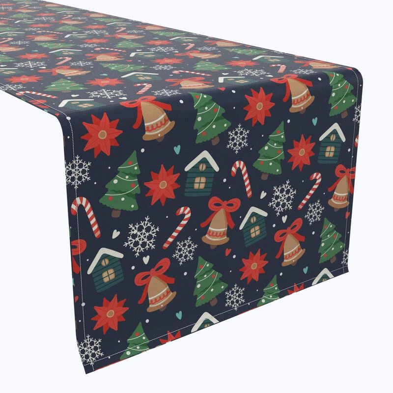16″ x 72″ Table Runner. Printed and Sewn in the USA, 100% Cotton. Hemmed Edges. Machine Washable, Gentle Cycle with Light Iron touch up as needed. Our Cotton is a natural fiber woven twill fabric. Perfect for all occasions!