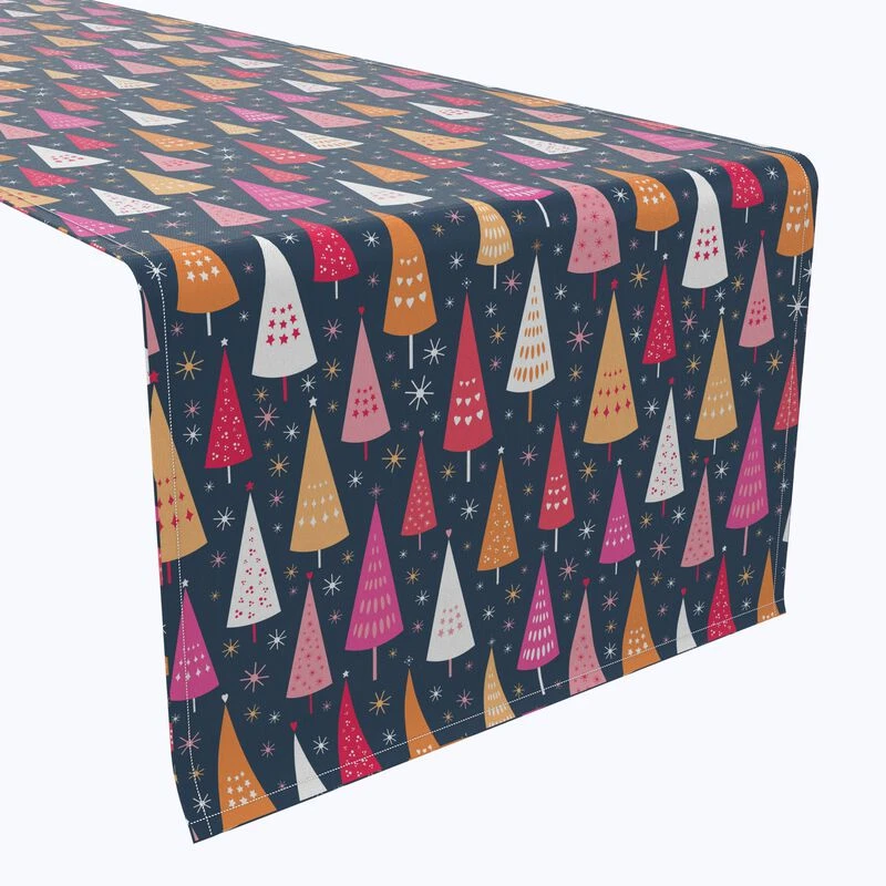 16″ x 108″ Table Runner. Printed and Sewn in the USA, 100% Cotton. Hemmed Edges. Machine Washable, Gentle Cycle with Light Iron touch up as needed. Our Cotton is a natural fiber woven twill fabric. Perfect for all occasions!