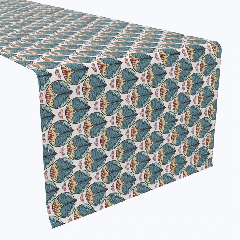 14″ x 108″ Table Runner. Made in the USA, 100% Milliken Spun Polyester. Hemmed Edges. Product is printed. Machine Washable: Warm water wash, cold rinse, tumble dry low. Light Iron touch up as needed. Will soften after each wash to a cotton feel. Engineered to resist stain absorption and linting. Perfect for any and all occasions at home, hotels & restaurants alike!