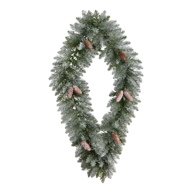3′ Holiday Christmas Geometric Diamond Frosted Wreath with Pinecones and 50 Warm White LED Lights