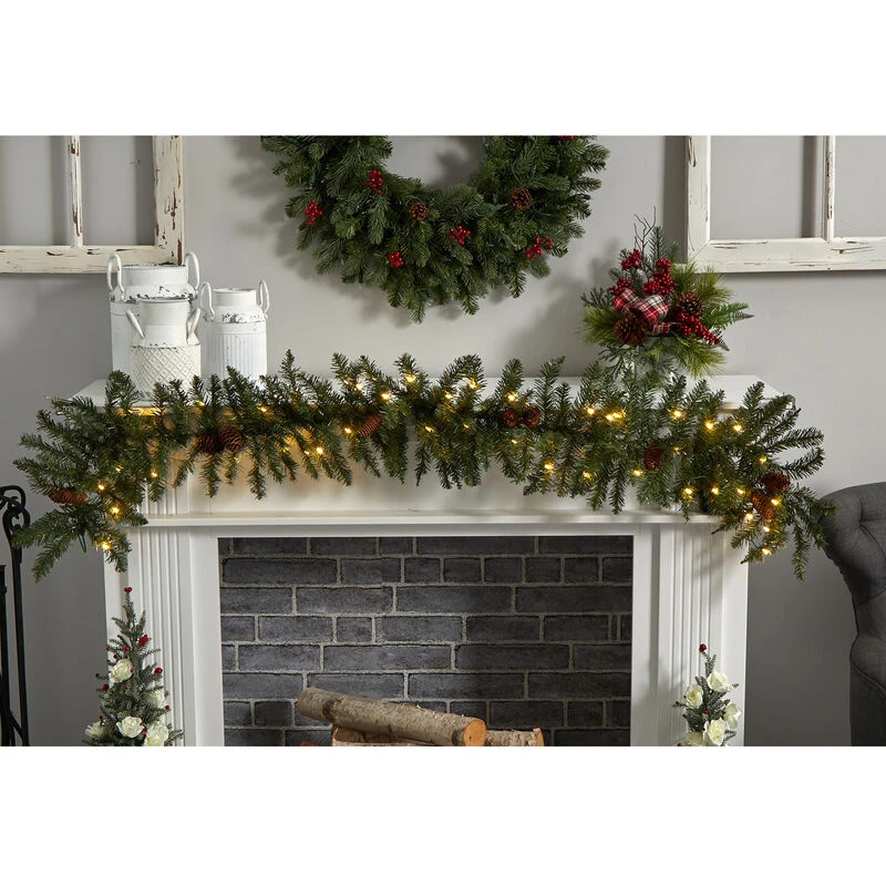1 x 6′ Mixed Alaskan Pines and Pinecones Artificial Christmas Garland 50 Warm White LED Lights