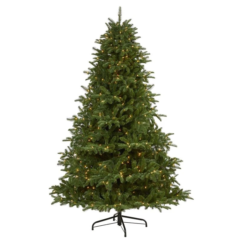 Create a traditional holiday scene with this artificial Christmas tree! Maintenance-free, it boasts a robust silhouette of tiered evergreens made up of 2644 bendable branches for decorating with personalized ornaments. Arriving pre-strung with 500 clear LED lights and stabilized on a metal stand, this traditional 7’ tall artificial Christmas tree will make decorating a breeze for years to come.